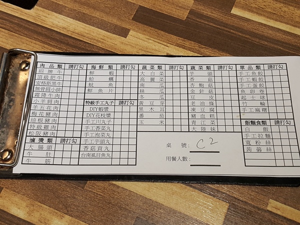 菜單,想吃啥,打個勾就好,不用自己拿