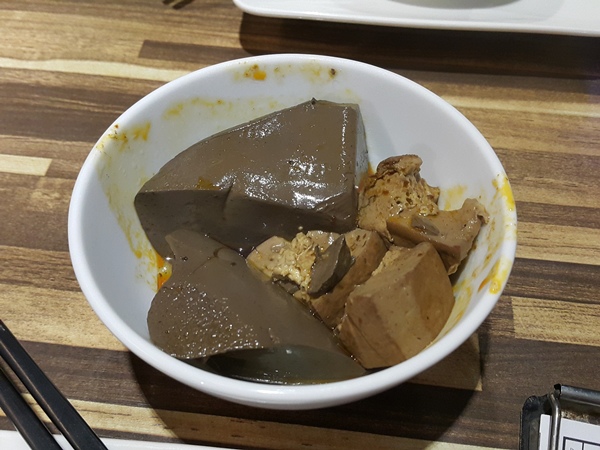 鍋底,鴨血與豆腐,不怎麼入味,不算優
